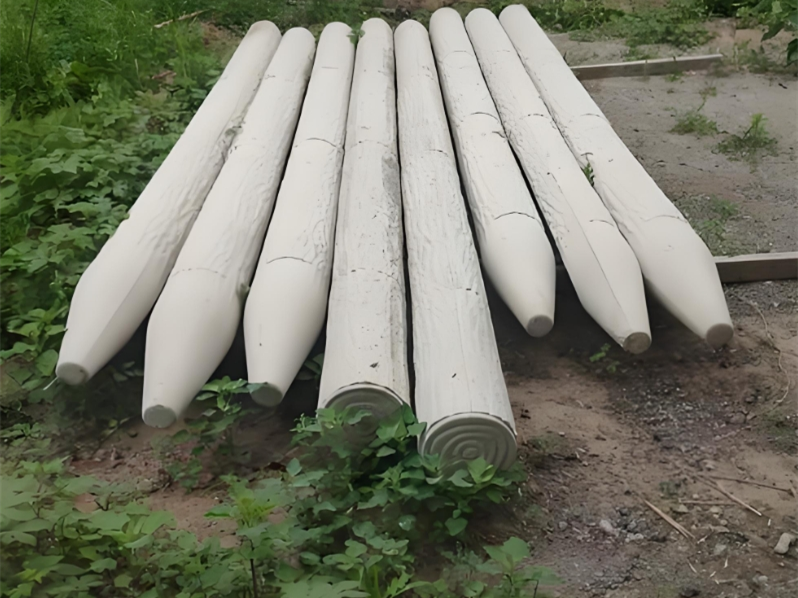 在水下和泥土交界的 “干濕交替區(qū)”,木樁腐蝕速度最快。但水泥仿木樁就不一樣,哪怕是有輕微污染的河水,比如含少量生活污水,也不會被腐蝕,因為混凝土不會被微生物分解,也不會和污水里的有機物發(fā)生反應(yīng)。再看鹽堿地或者沿海區(qū)域,這些地方的土壤、海水里含鹽量高,對金屬、木頭的腐蝕特別強,普通鋼管半年就會生銹,天然木樁 1 年左右就會腐爛。但水泥仿木樁在這種環(huán)境下表現(xiàn)很穩(wěn)定,