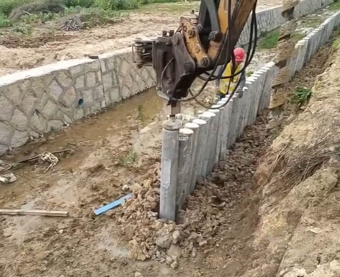 打樁要 “輕錘慢打”,每錘擊 10 次停一下,查垂直度和入土深度 —— 別圖快用大力砸,尤其是直徑<300mm 的小圓樁,容易被砸裂。遇到硬土層,可多錘擊幾次,但力度要均勻,避免 “急剎式” 錘擊。